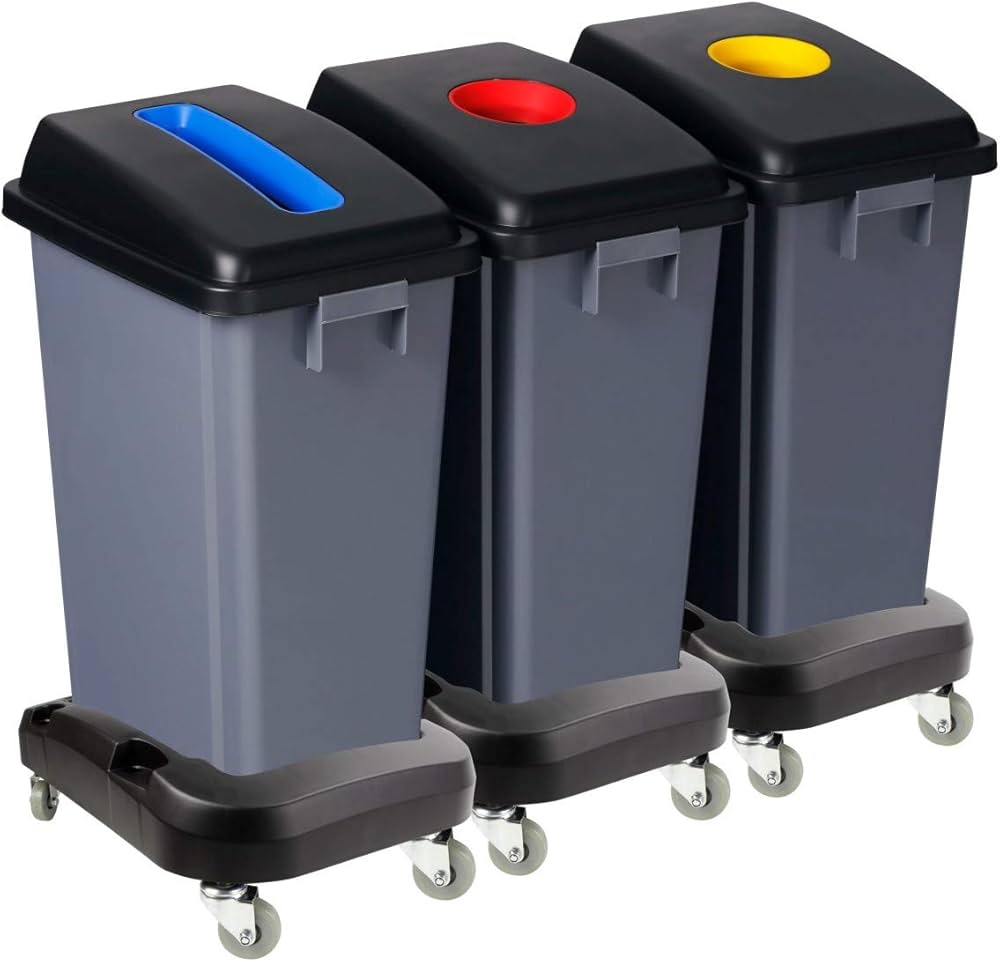 Garbage Recycle Bin 3 Part Binwith Wheel